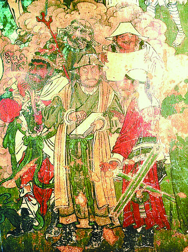 ▲河北石家庄毗卢寺明代壁画中穿皮衣、戴瓦棱帽的元代吏卒