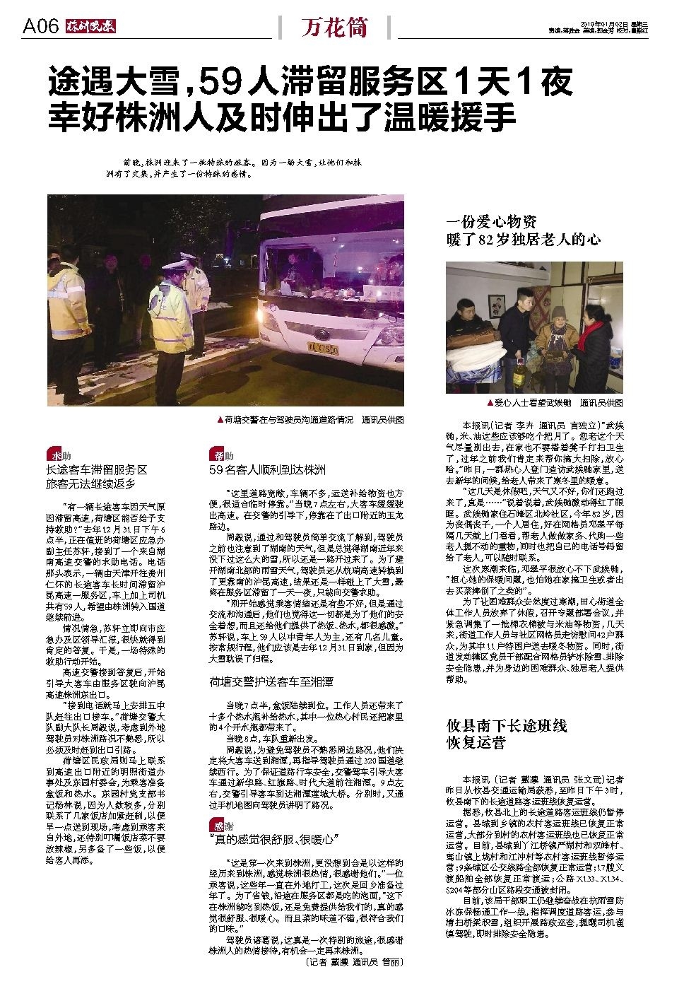 途遇大雪,59人滞留服务区1天1夜幸好株洲人及时伸出了温暖援手