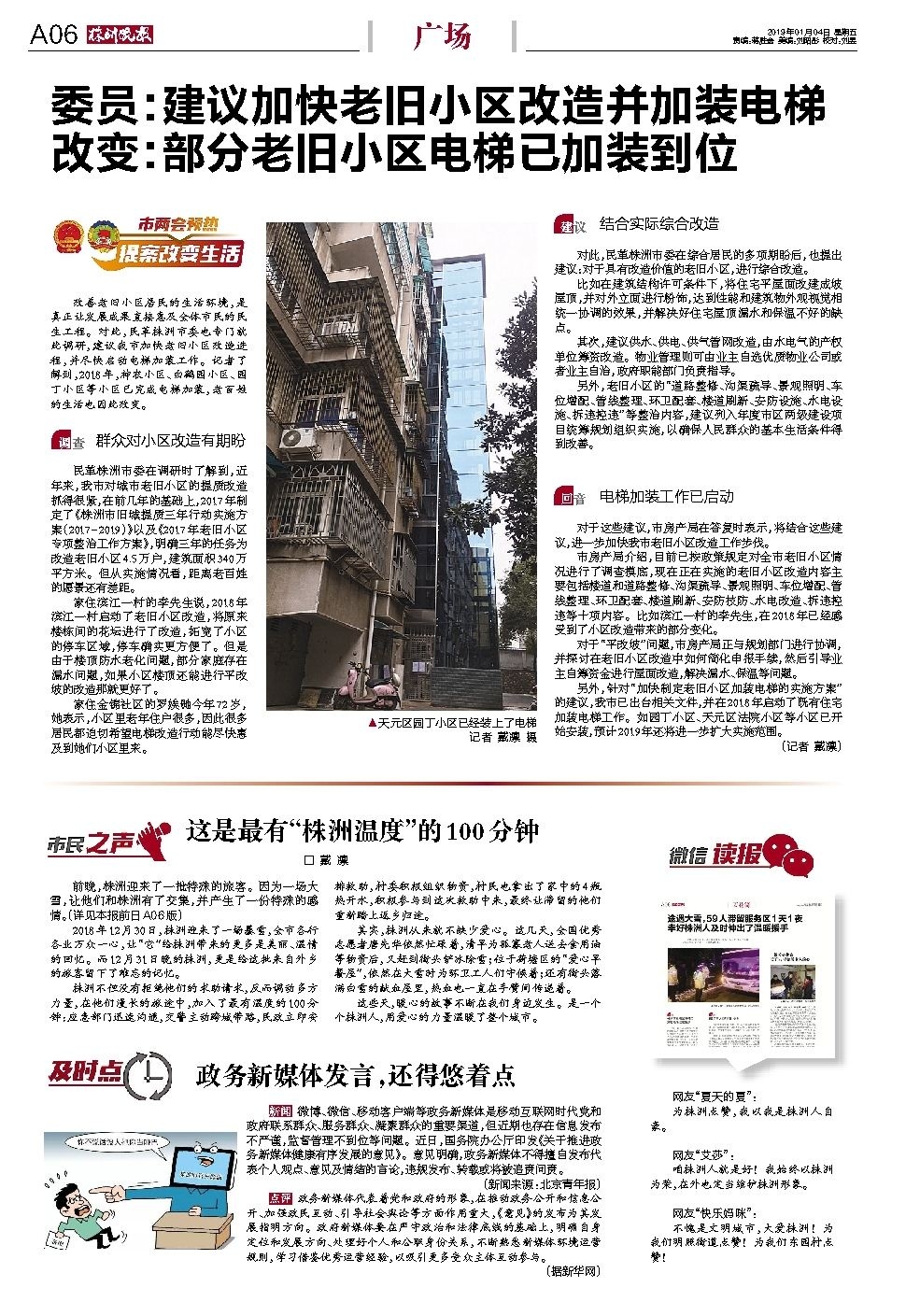 委员:建议加快老旧小区改造并加装电梯 改变:部分老旧小区电梯已加装到位
