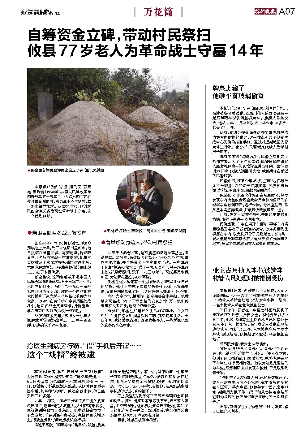 自筹资金立碑,带动村民祭扫 攸县77岁老人为革命战士守墓14年