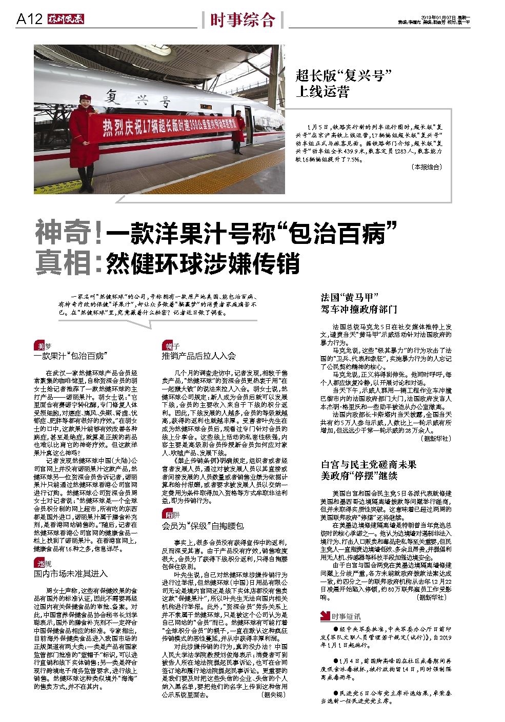 神奇!一款洋果汁号称“包治百病” 真相:然健环球涉嫌传销