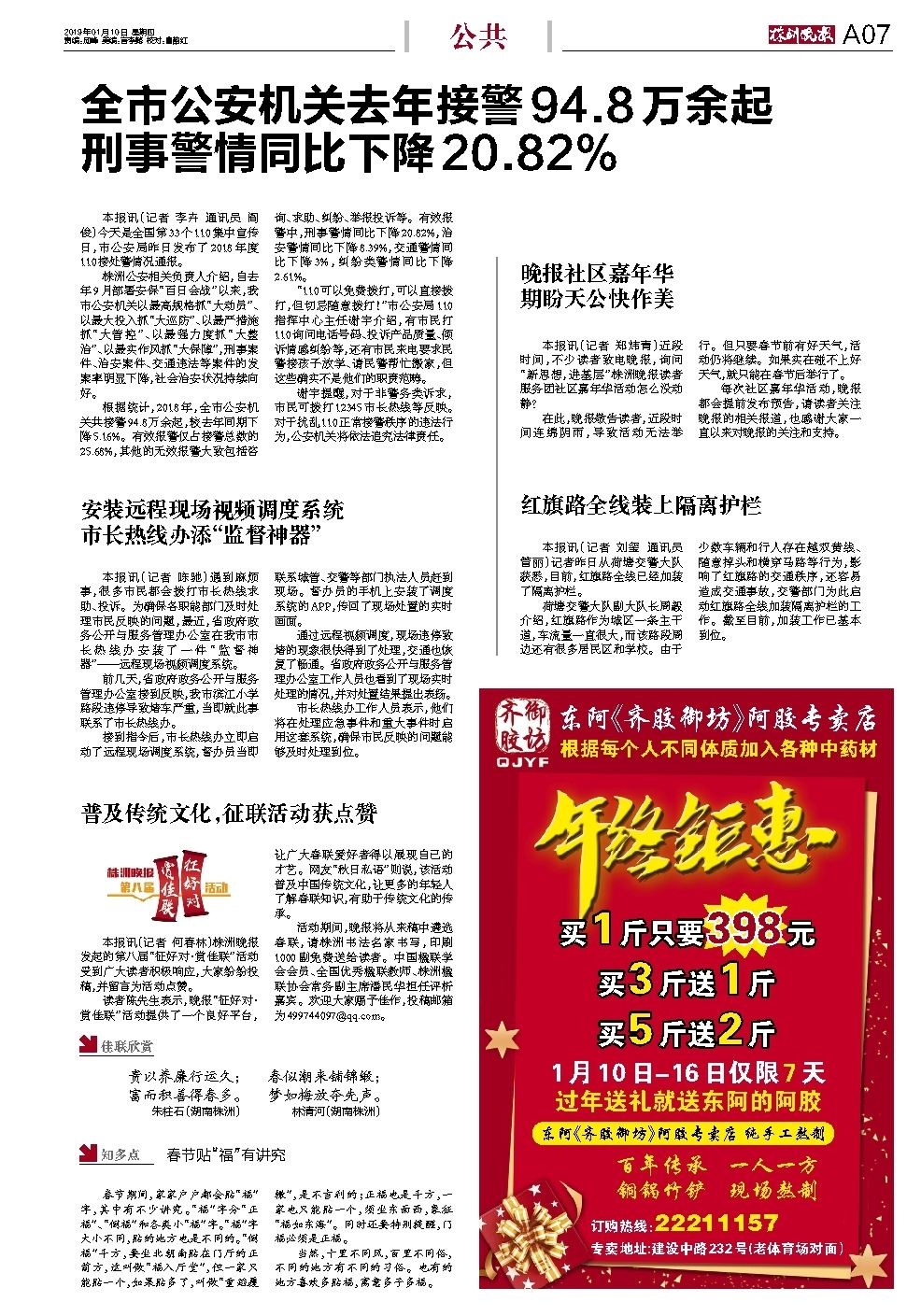 全市公安机关去年接警94.8万余起 刑事警情同比下降20.82%