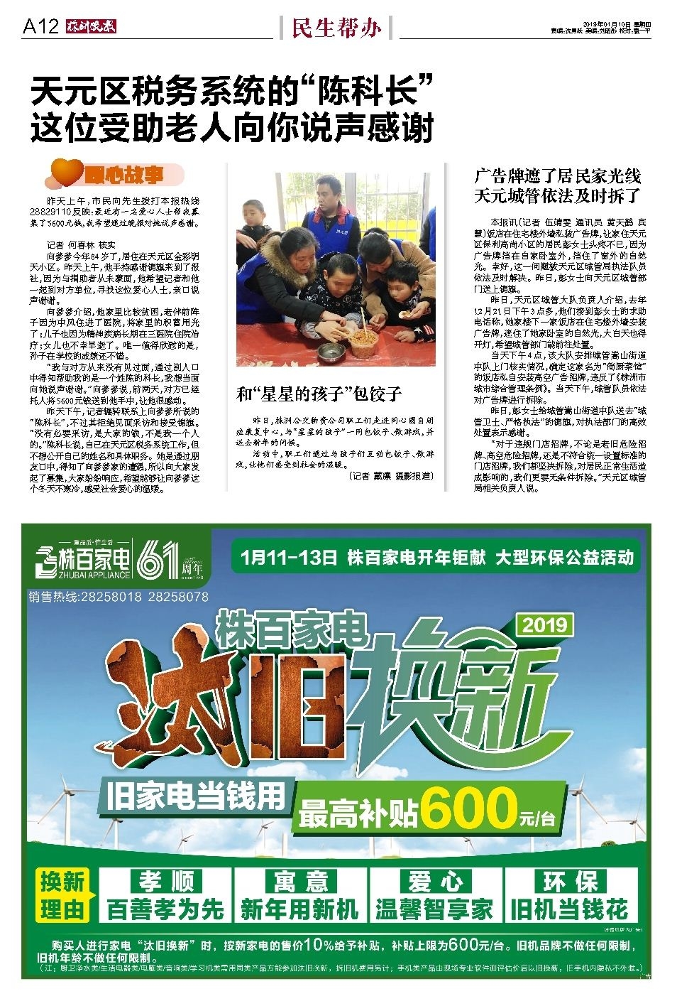 天元区税务系统的“陈科长”这位受助老人向你说声感谢