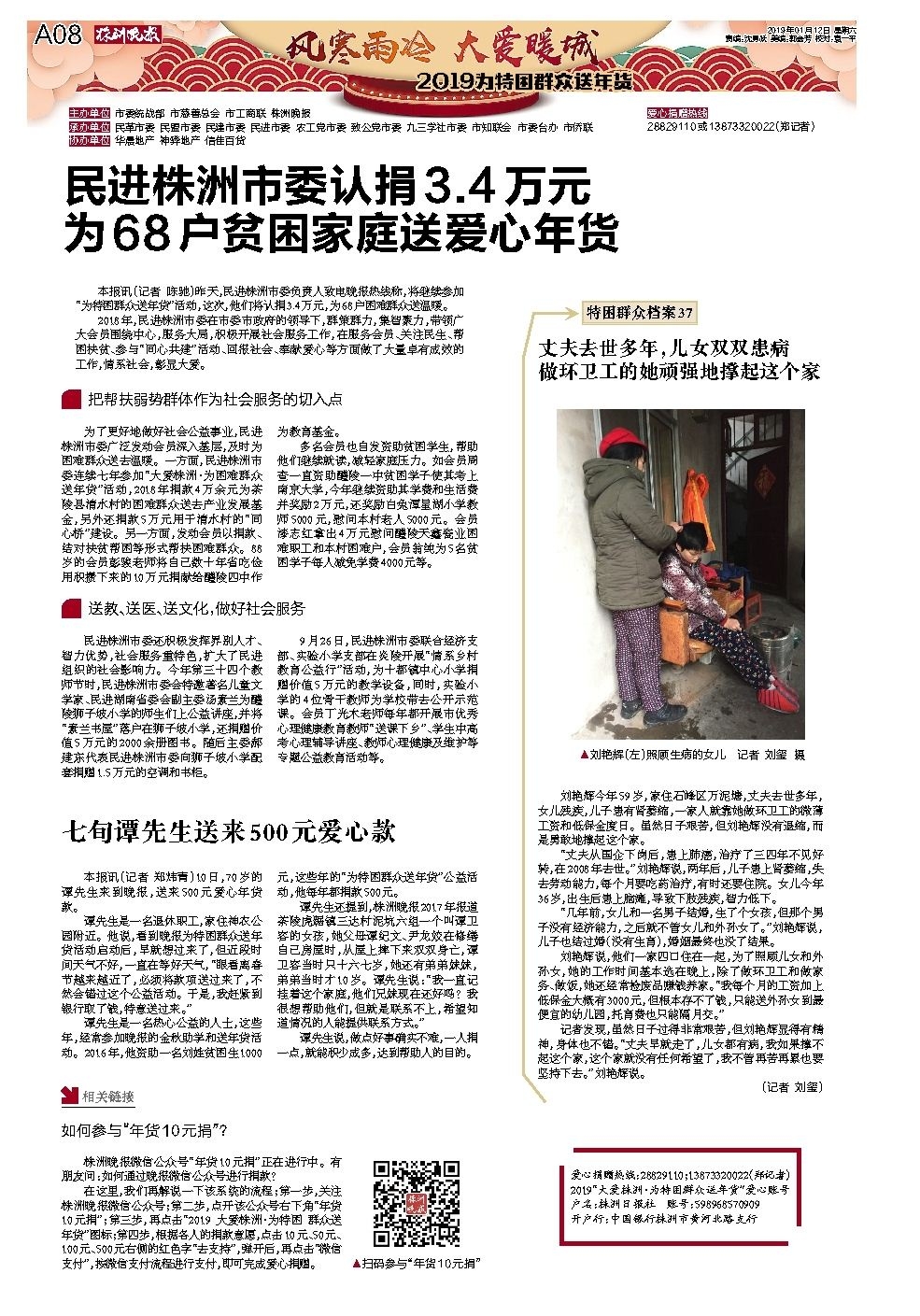民进株洲市委认捐3.4万元为68户贫困家庭送爱心年货