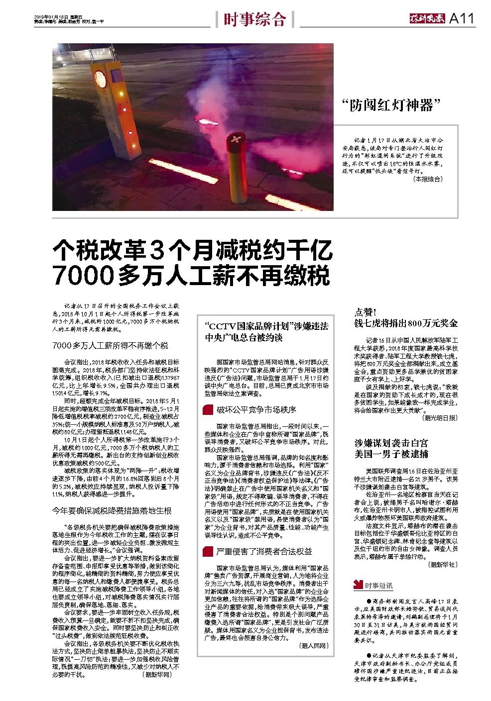 个税改革3个月减税约千亿 7000多万人工薪不再缴税
