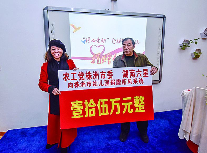 ◀农工党株洲市委携手爱心企业,向市幼儿园捐赠新风系统 记者 刘震 摄 同心爱幼 本报讯(记者 李卉 通讯员 王雨青)公办幼儿园往往班级人数较多,受通风采光、雾霾等因素影响,幼儿容易出现呼吸道疾病的交叉感染。2018年12月29日上午,农工党株洲市委携手爱心企业举行“同心爱幼”行动,向市幼儿园捐赠价值15万元新风系统。 农工党株洲市委专职副主委肖长海介绍,株洲农工党长期关注教育事业的发展,打造了“同心班级”“同心社区”等品牌。关注幼儿健康,不仅要靠医疗卫生服务的“小处方”,更要靠社会整体联动的“大处方”,此次整合资源、积极对接社会需求便是一次创新尝试。