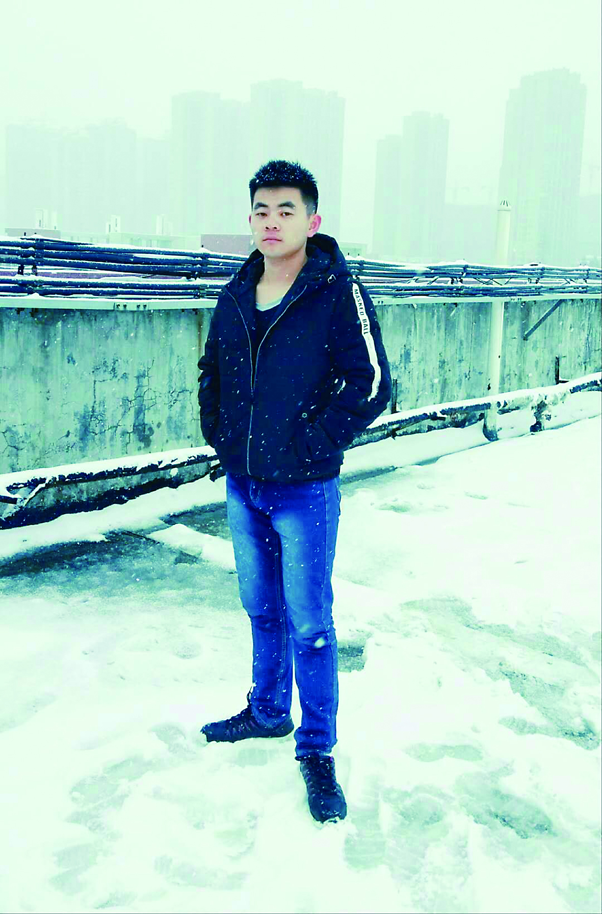 ▲前天,伊奕站在校园楼顶留影 记者 何春林 摄
