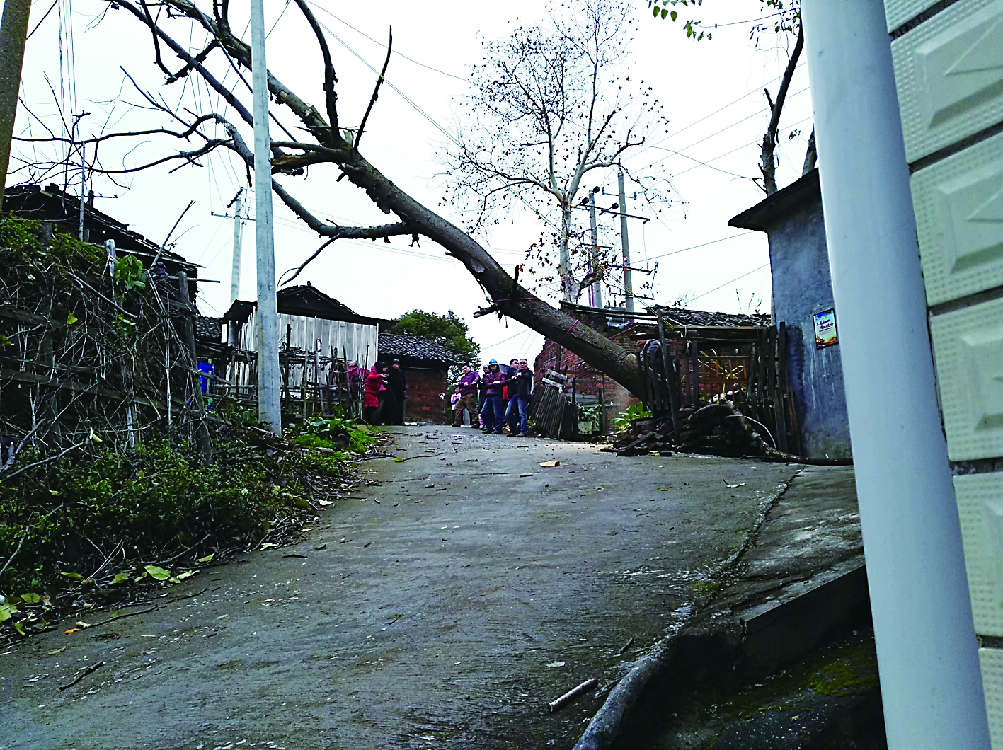 本报讯(记者 何春林 通讯员 张宇鹏)近日,醴陵市车顿桥社区居民龙某家门前一棵大树倒了,压在路旁的电线杆上,存在安全隐患。