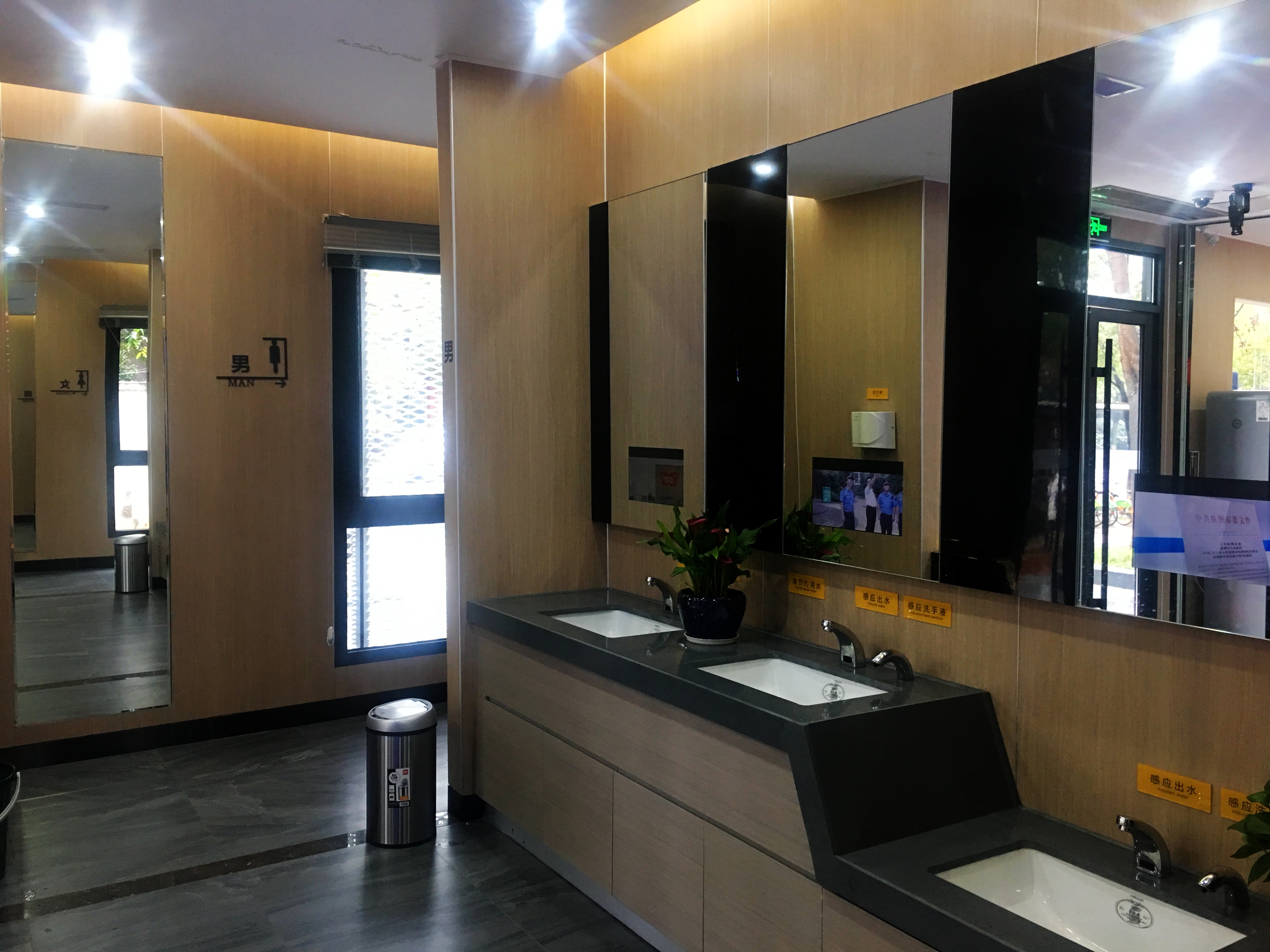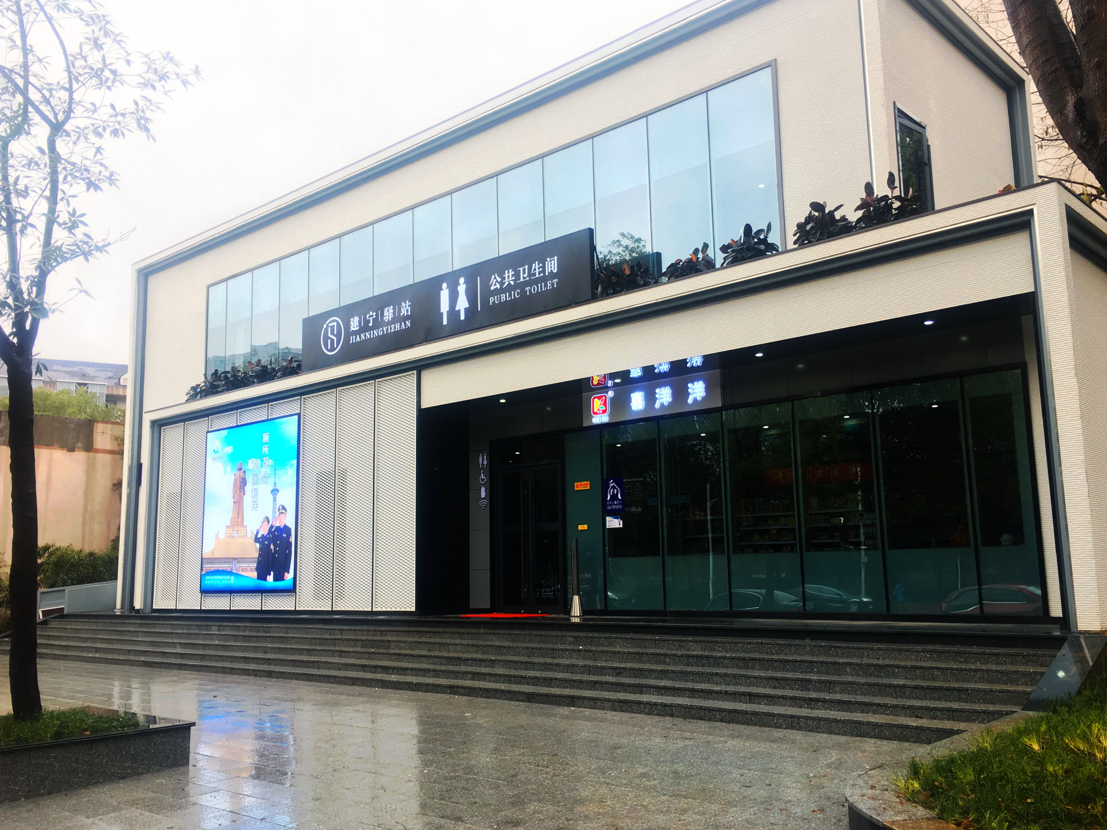 我市建成的第一座“建宁驿站”位于神农公园门前,该公厕外观为新中式风格,采用了冷弯薄壁型钢结构,占地面积80余平方米,分隔出6个功能区,包括便民服务区、公厕区、环卫工人休息室、母婴室及第三卫生间、城管岗亭。门口的显示屏除显示温度、湿度外,还监视着各项异味指标,一旦内部空间异味超标,厕联网系统将自动启动强排功能,瞬间抽离异味。