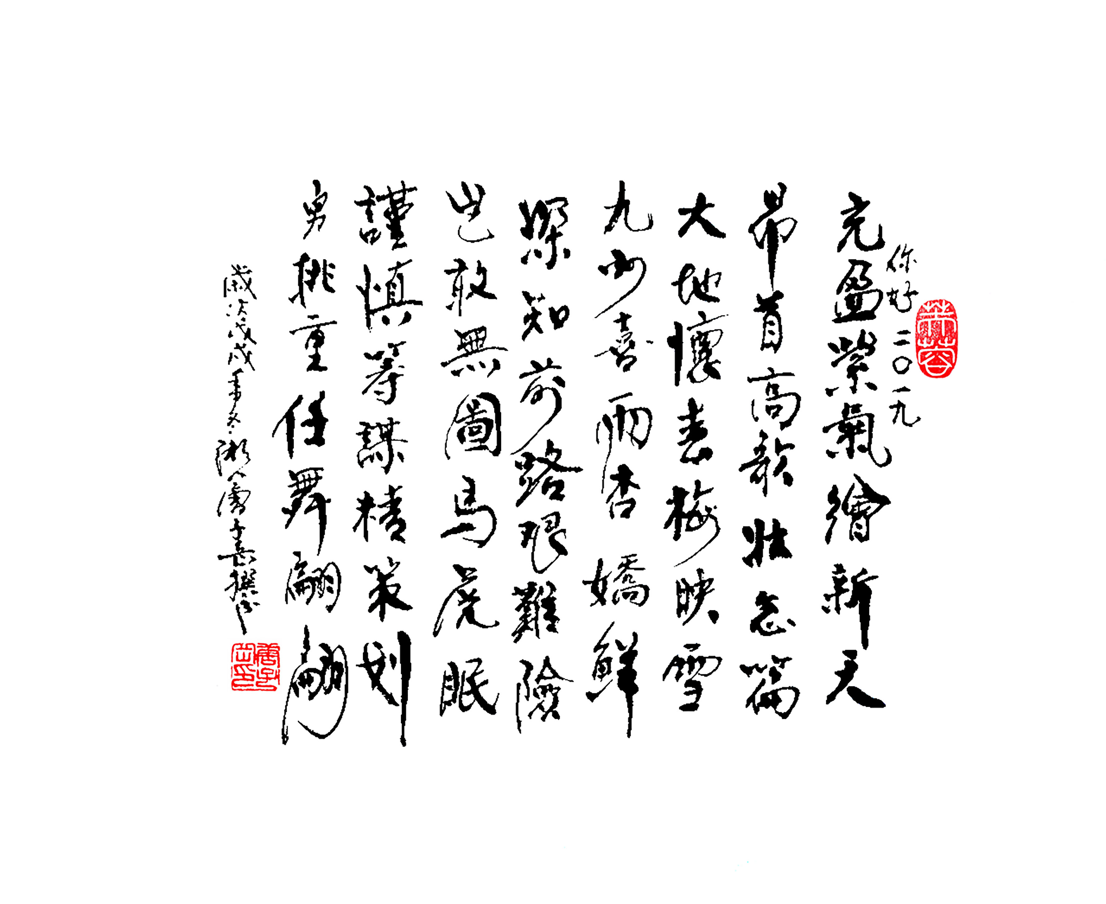 新的一年又来了,写一首诗迎接2019年。充盈紫气绘新天,昂首高歌壮志篇。大地怀春梅映雪,九州喜雨杏娇鲜。深知前路艰难险,岂敢无图马虎眠。谨慎筹谋精策划,勇挑重任舞翩翩!