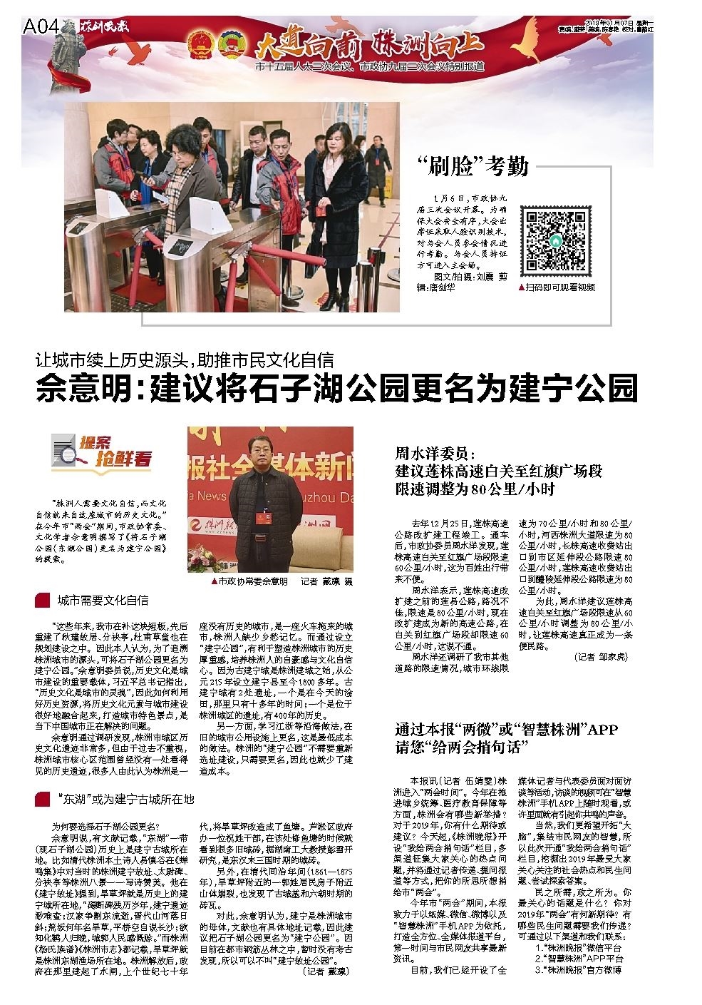 “这些年来,我市在补这块短板,先后重建了秋瑾故居、分袂亭,杜甫草堂也在规划建设之中。因此本人认为,为了追溯株洲城市的源头,可将石子湖公园更名为建宁公园。”佘意明委员说,历史文化是城市建设的重要载体,习近平总书记指出,“历史文化是城市的灵魂”,因此如何利用好历史资源,将历史文化元素与城市建设很好地融合起来,打造城市特色景点,是当下中国城市正在解决的问题。