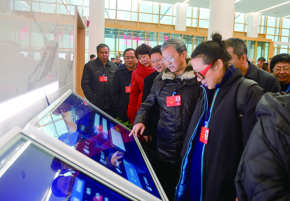 ▲昨日,人大代表视察市民中心 记者 易翔 摄