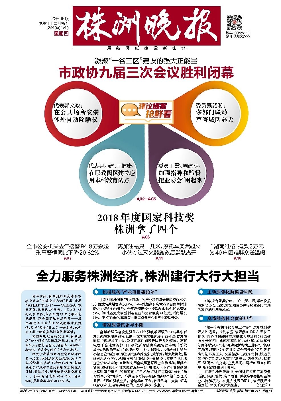在服务株洲经济中,株洲建行实现了高质量发展,存款、贷款、资产质量、利税等主要指标在同业中持续领先。在业务发展的同时,该行履行社会责任,体现了大行大担当。 (张胜祥)