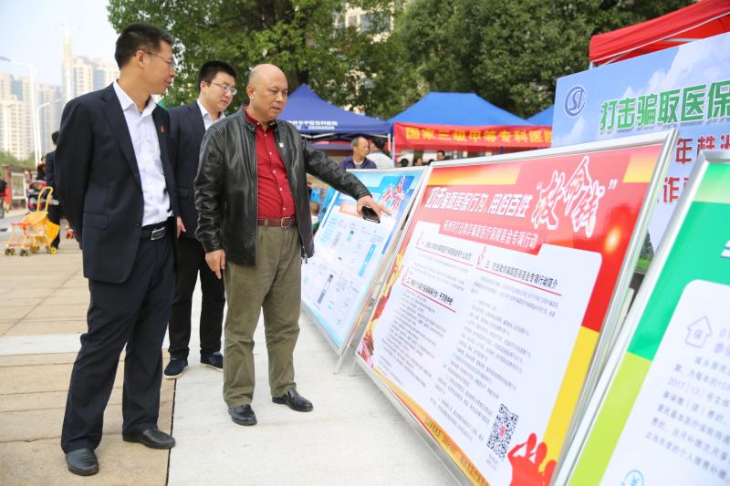 ▲陈志鸿(右一)向市民宣传“打击骗取医保”知识 通讯员供图