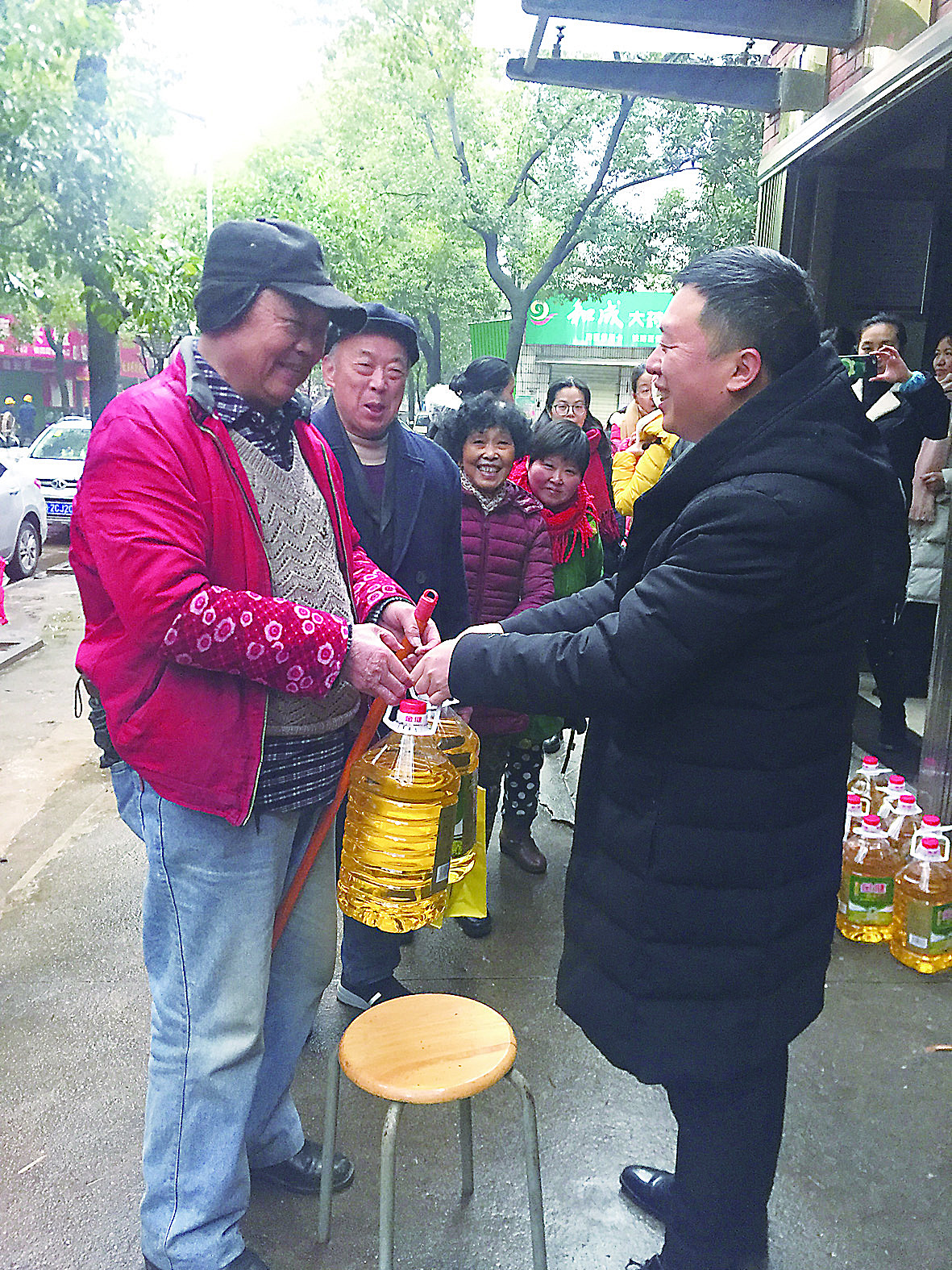 昨日上午,天元区部分人大代表来到铁西社区、金锦社区和滨江社区,为几十名困难群众发放慰问物资,每份物资包括两瓶食用油和一袋大米。 (记者 刘玺 通讯员 毛清 摄影报道)