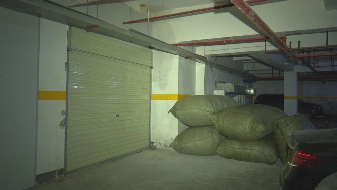 ▲地下停车场部分公共区域被建成仓库,门口还摆放着货物