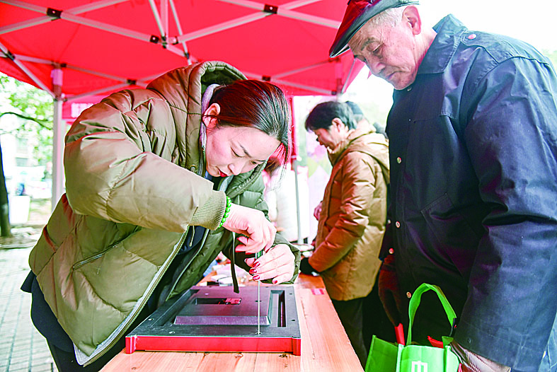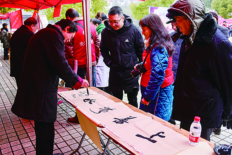 “老师麻烦帮我写一个与‘家和万事兴’相关的作品。”市楹联协会的书法摊位排起了长队,数十位市民拿到了自己心仪的作品。