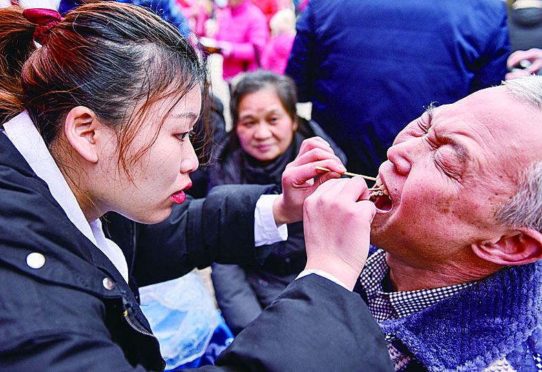 在南光口腔窗口,医护人员正在给市民普及口腔健康知识,并帮助大家检查口腔疾病。