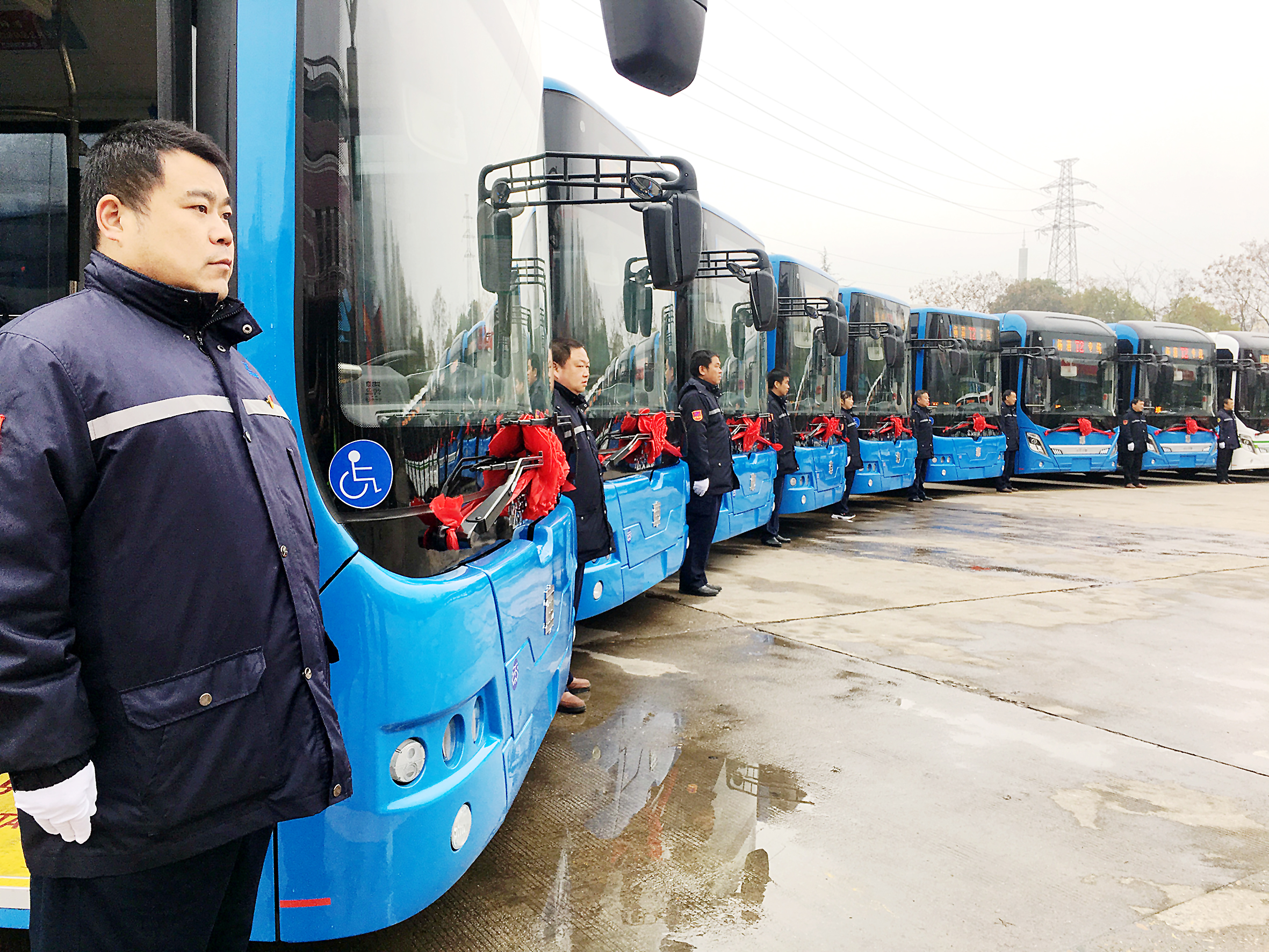 ▲我市去年底新购置了一批低地板纯电动公交车 记者 戴凛 摄