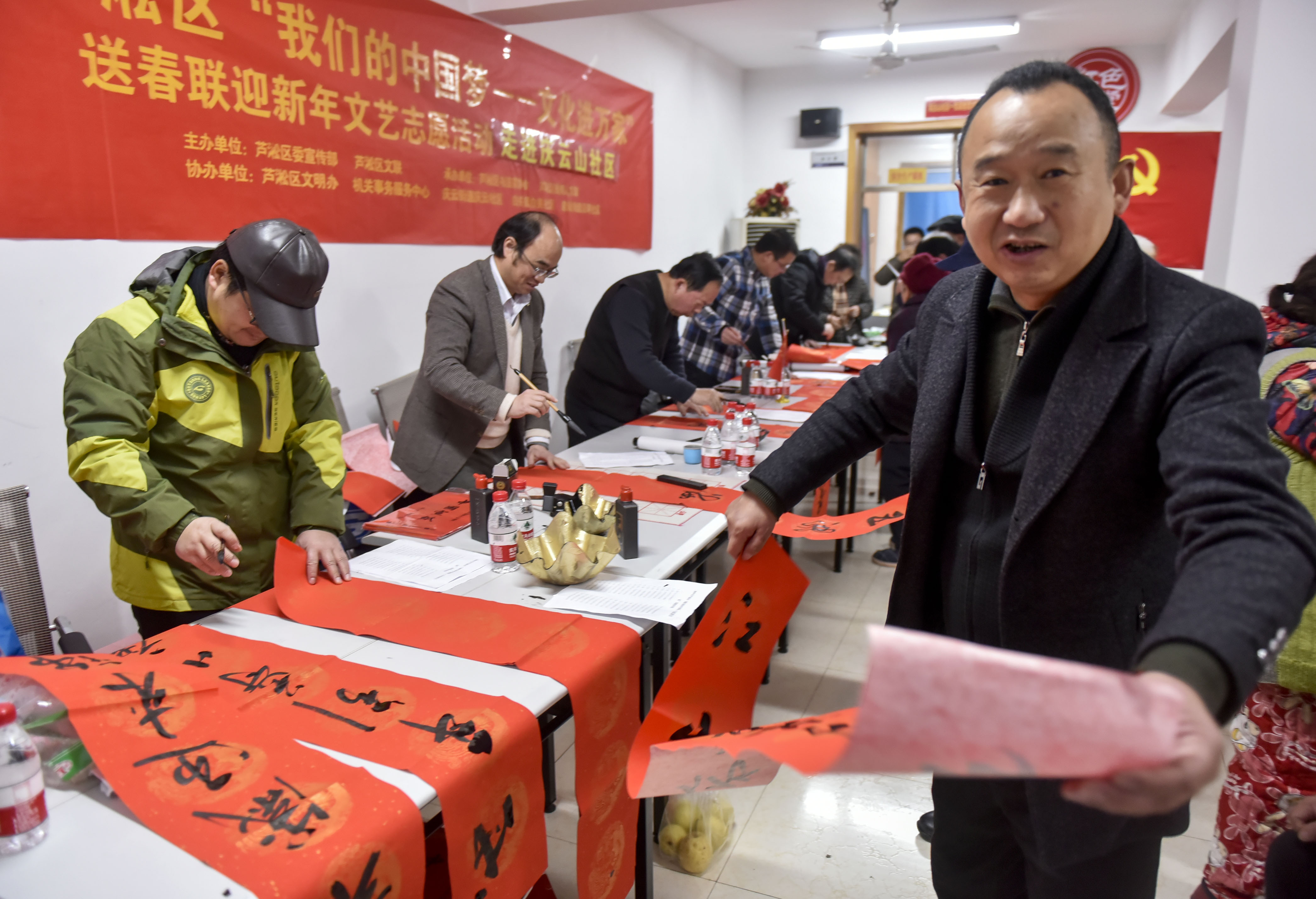 1月15日,芦淞区“我们的中国梦——文化进万家”送春联迎新年活动,在庆云山社区举行。在现场,来自芦淞区书法家协会的书法家们,为200多位社区居民免费书写春联。据介绍,他们还将走进各学校、单位和社区广场开展送春联活动,活动将持续到本月29日。 (记者 刘震 摄影报道)