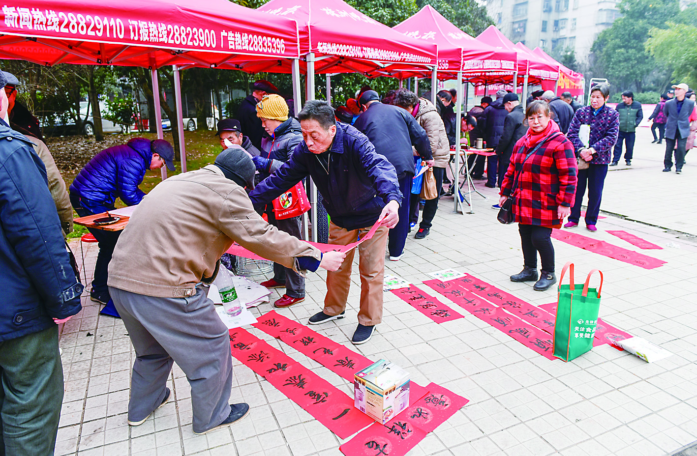 ▲市楹联协会书法家为市民撰写春联