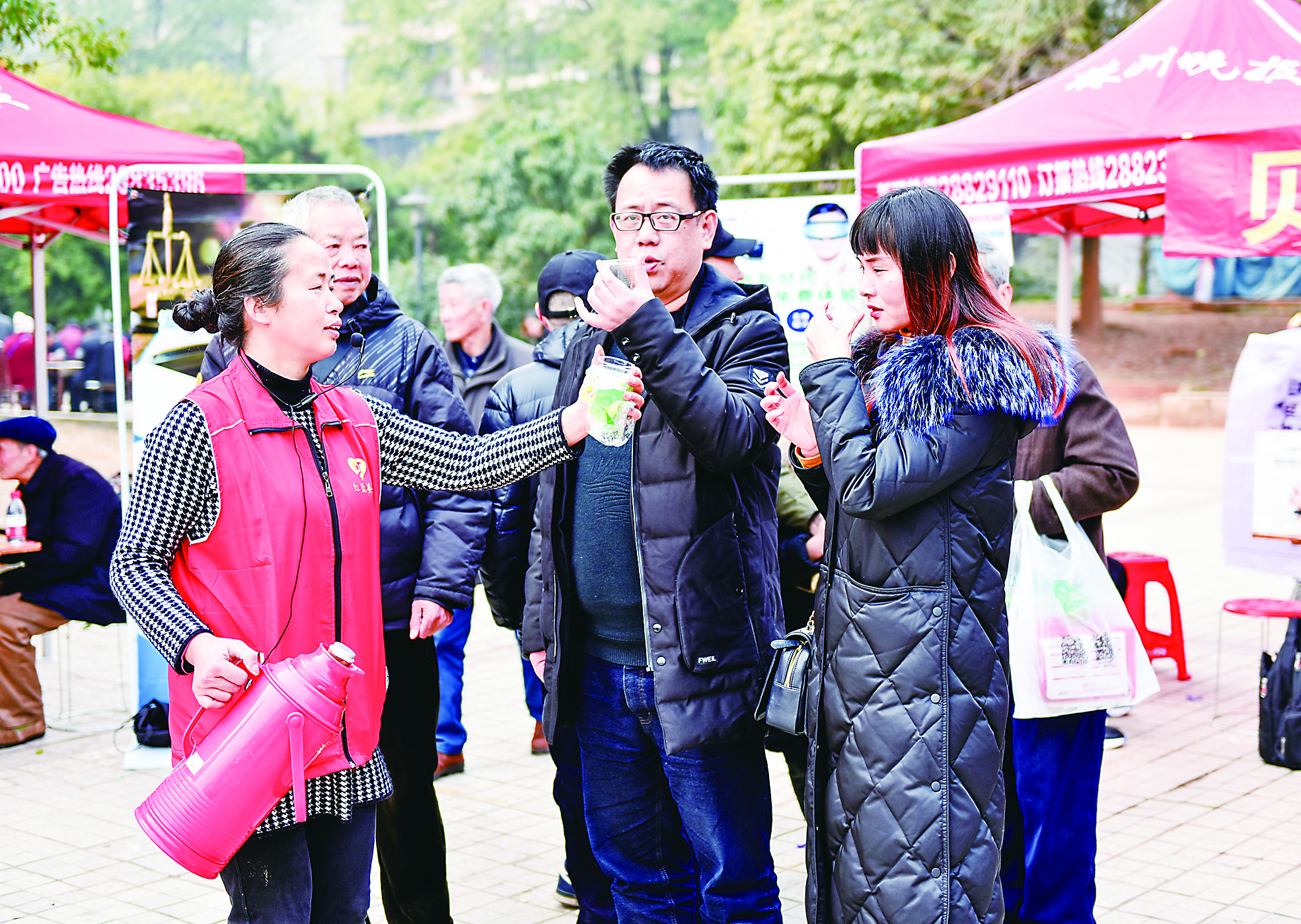 ▲姜汤大姐为市民送姜茶