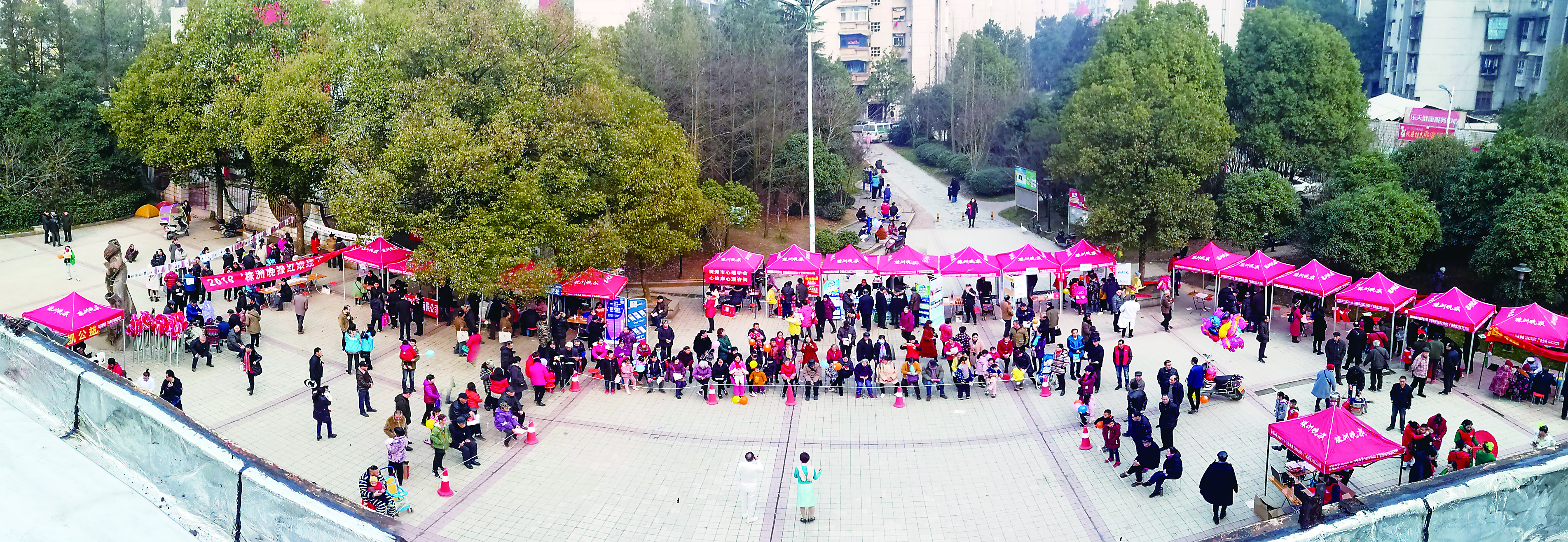 ▲1月26日,天元区滨江社区文化广场,第十届株洲晚报读者服务团“社区嘉年华”大型公益活动举行。图为俯瞰活动现场