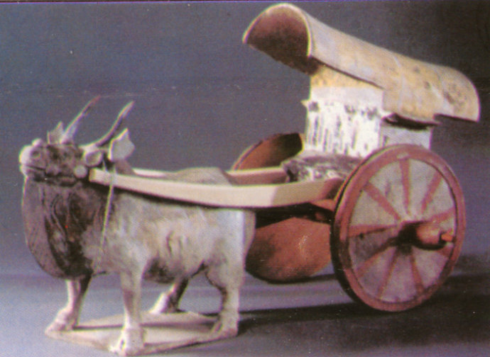 ▲南北朝时高级“大巴”——陶牛车(北齐)