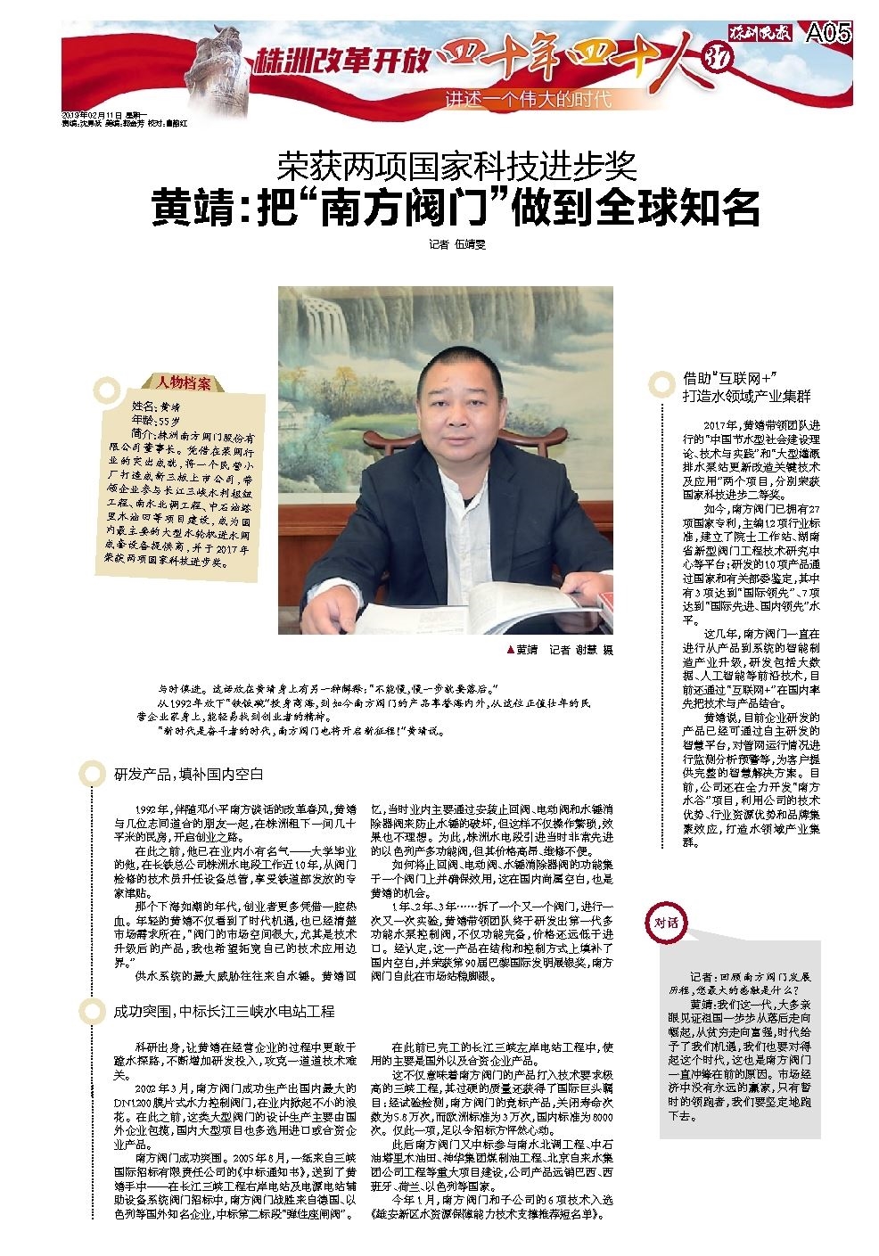 荣获两项国家科技进步奖黄靖:把“南方阀门”做到全球知名