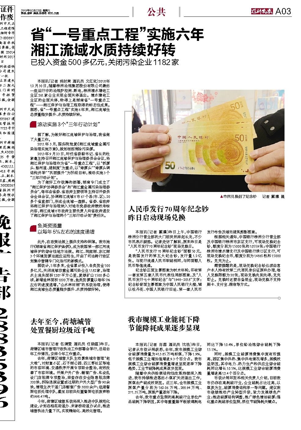省“一号重点工程”实施六年 湘江流域水质持续好转
