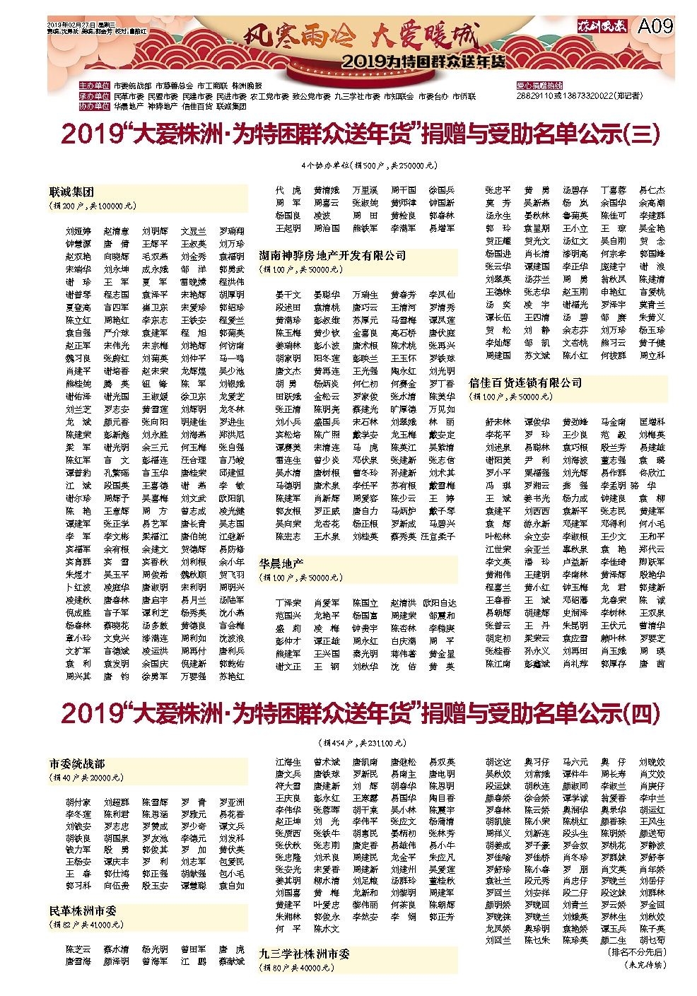 2019“大爱株洲·为特困群众送年货”捐赠与受助名单公示(四)