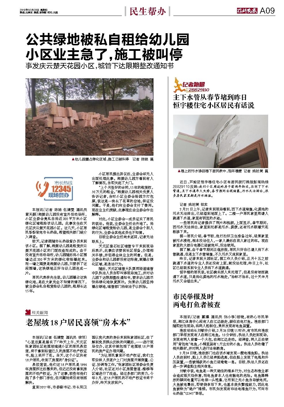 公共绿地被私自租给幼儿园小区业主急了,施工被叫停