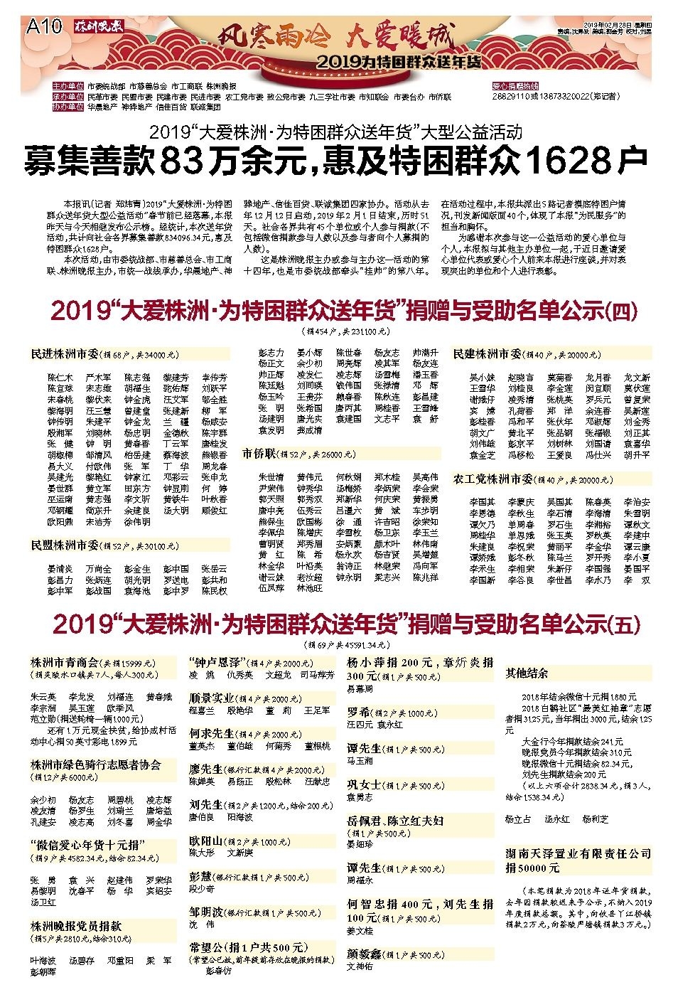 2019“大爱株洲·为特困群众送年货”捐赠与受助名单公示(四)