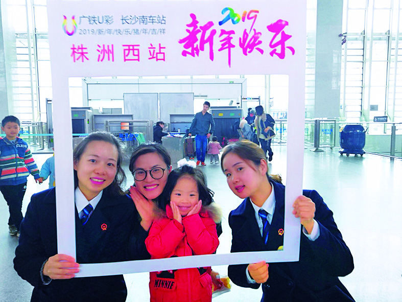 节后返程高峰,株洲西站工作人员别出心裁,采用与旅客“同框”的方式,为他们送上新春祝福,记录下新春启航时的微笑。