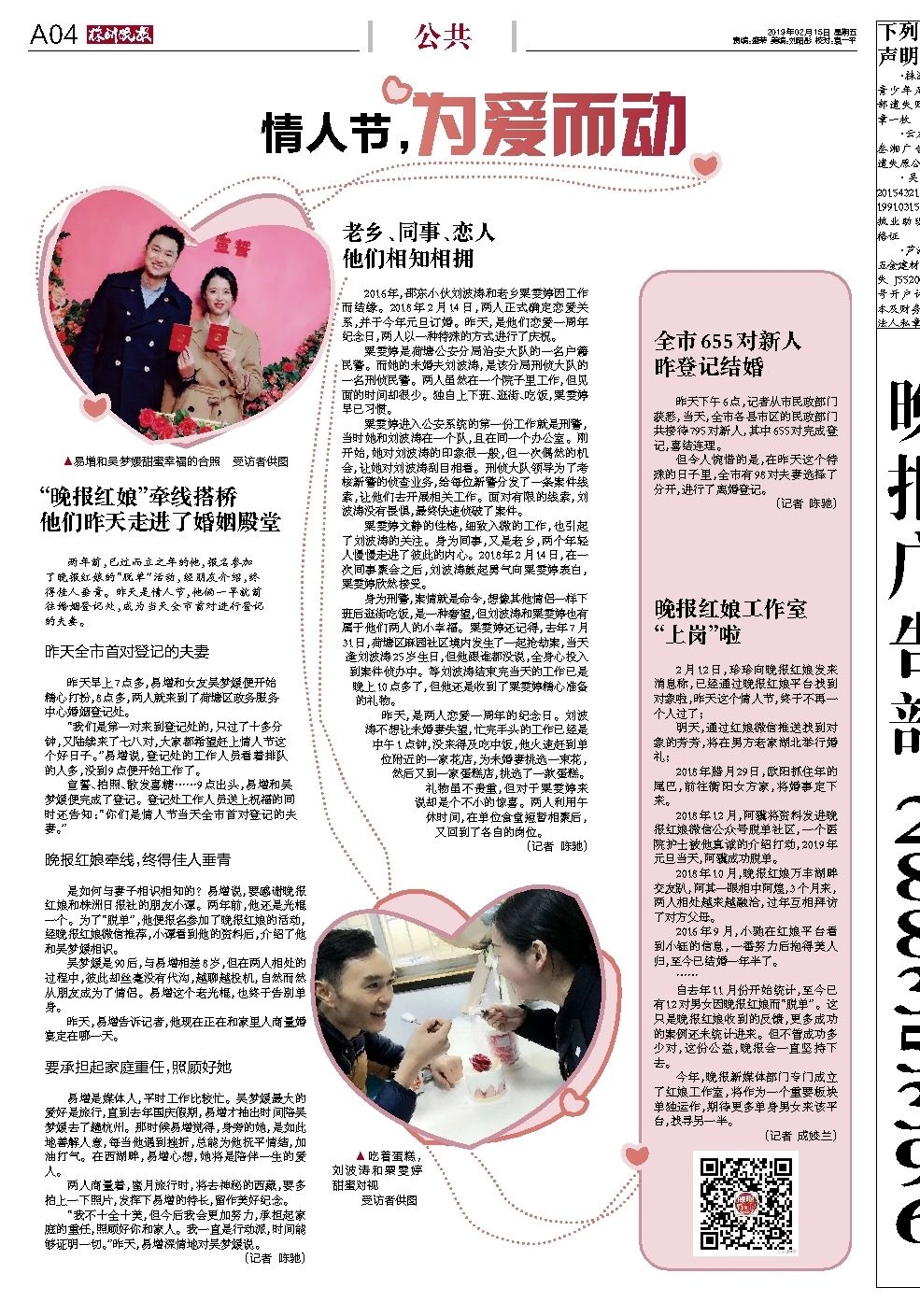 今年,晚报新媒体部门专门成立了红娘工作室,将作为一个重要板块单独运作,期待更多单身男女来该平台,找寻另一半。