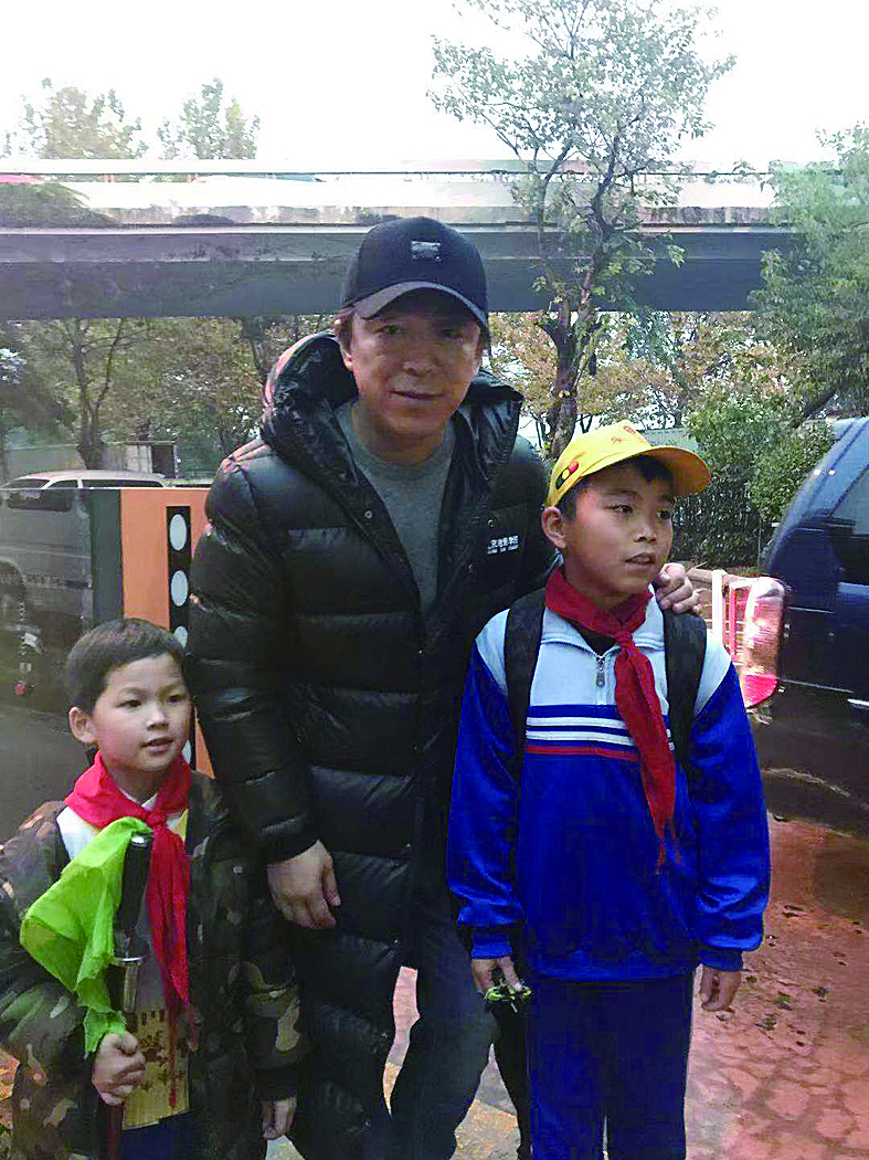 ▶邹嘉俊(右)与黄渤、小伙伴合影