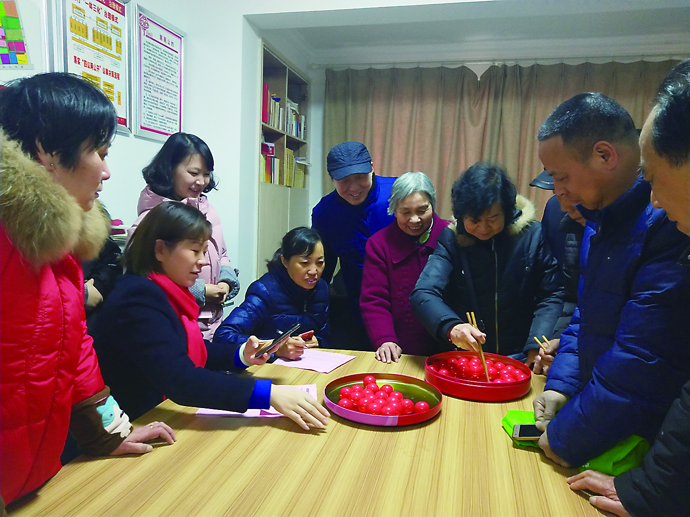 昨日上午,天元区桥北社区开展了“庆元宵、猜灯谜、吃汤圆”的活动。