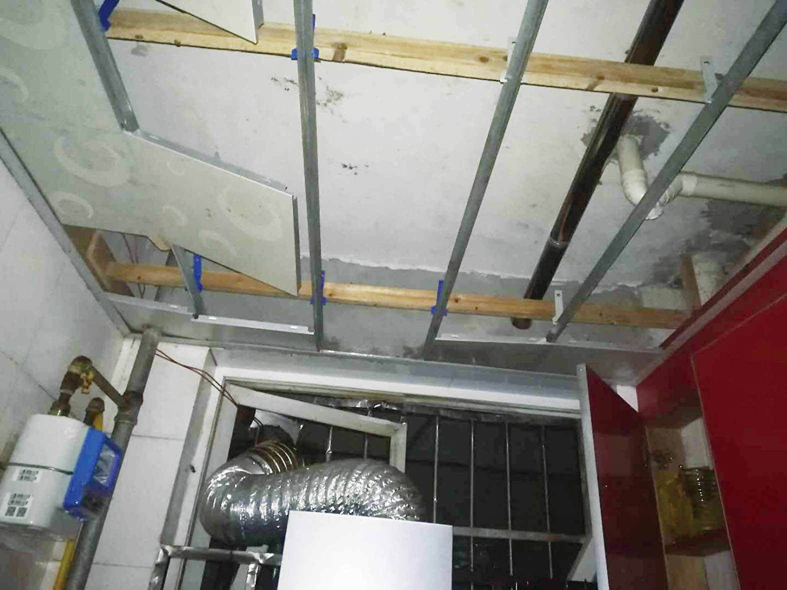 ▲天然气爆燃将天花板震落 记者 刘玺 摄