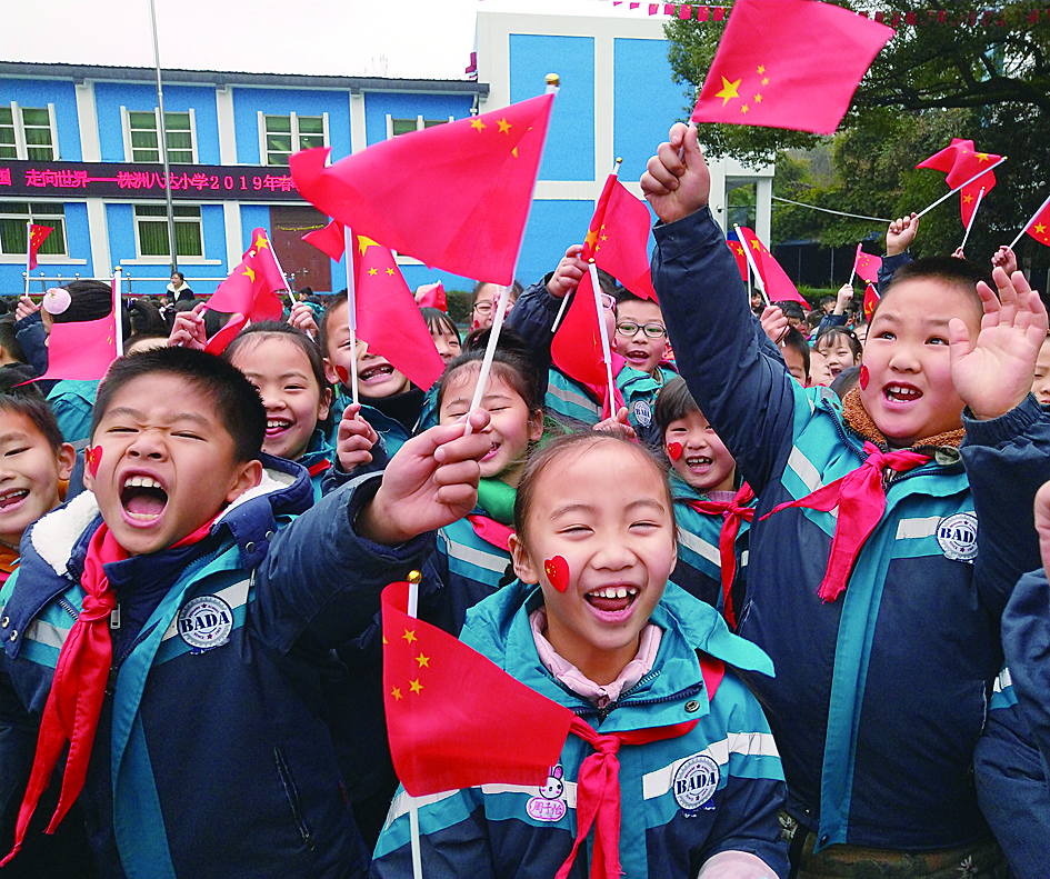 “我和我的祖国,一刻也不能分割,无论我走到哪里,都流出一首赞歌……”昨日,在株洲八达小学的开学典礼上,两千余名师生齐唱《我和我的祖国》,拉开了新学期的帷幕。