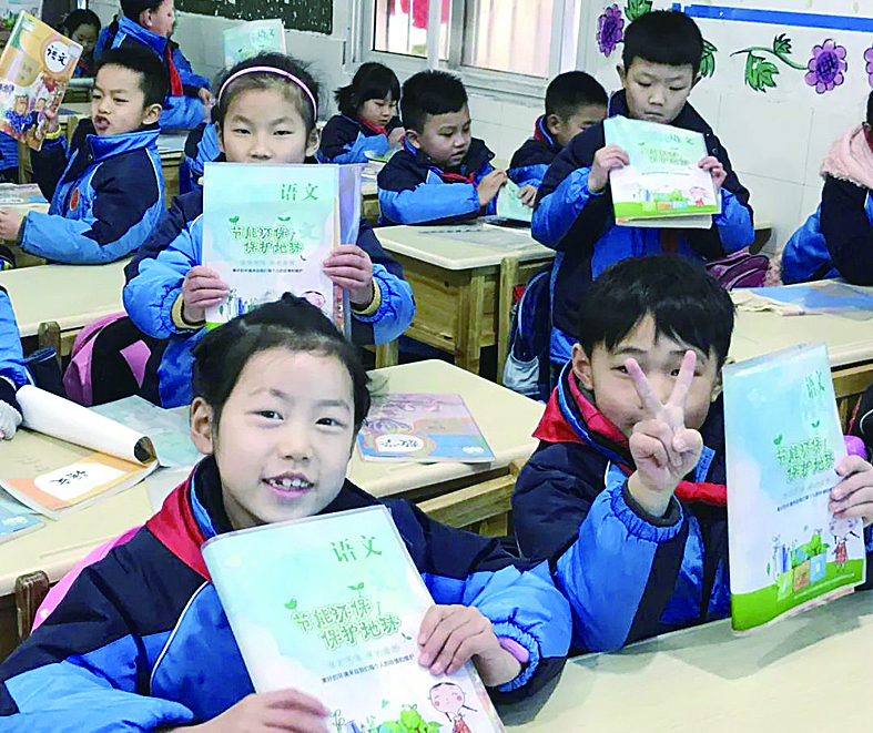 记者还了解到,开学这两天,荷塘区4341名小学二年级学生陆续收到了一份“绿色”礼物——由荷塘区生态文明建设暨污染防治攻坚战指挥部免费发放的环保主题书皮。