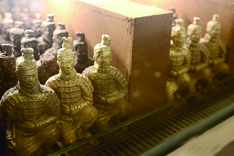2月20日,陕西西安一家酒店大堂展销柜内摆放着“兵马俑巧克力”。据酒店工作人员介绍,这种兵马俑造型的巧克力每个高约15厘米,售价68元人民币,自今年初推出以来,不少游客专程前来购买,颇受欢迎。