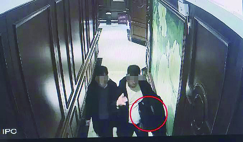 接到报案后,警方调取了当时包厢附近的监控。监控画面显示,2月13日凌晨1点40分左右,包厢内的人零零散散离开,走在最后的几名男子当中,有一名中年男子将包夹在外套内侧,而这个包正是张先生的。