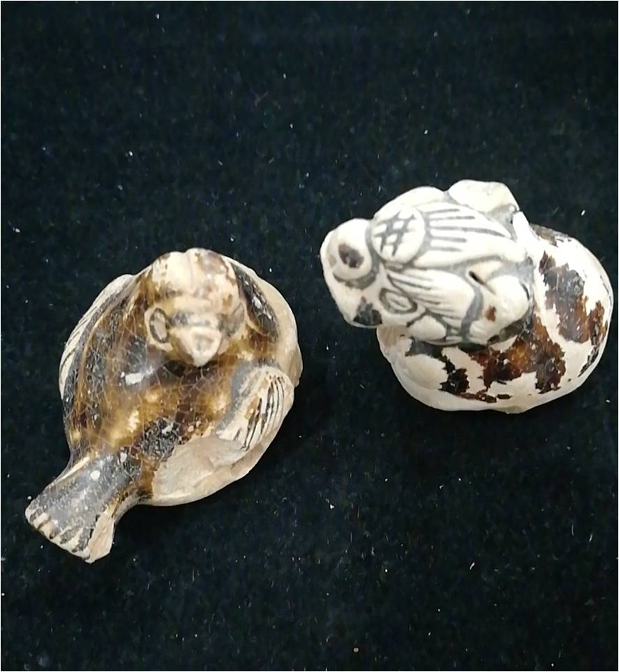 ▲唐代长沙窑瓷动物玩具“喜鹊”、“年兽”