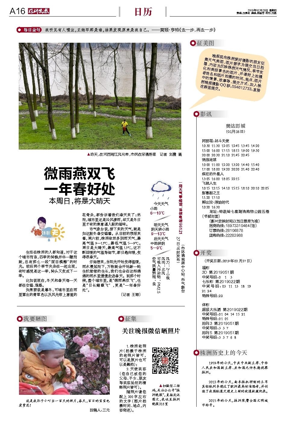 市气象台说,接下来的天气,就是如这般冬春交错着。从目前的预报来看,周六前,株洲依然多阴雨天气,最高气温9—13℃,最低气温5—9℃。周日是大晴天,最高气温13℃,这不断回暖的气温等细节,都日趋向暖,变得很春天。