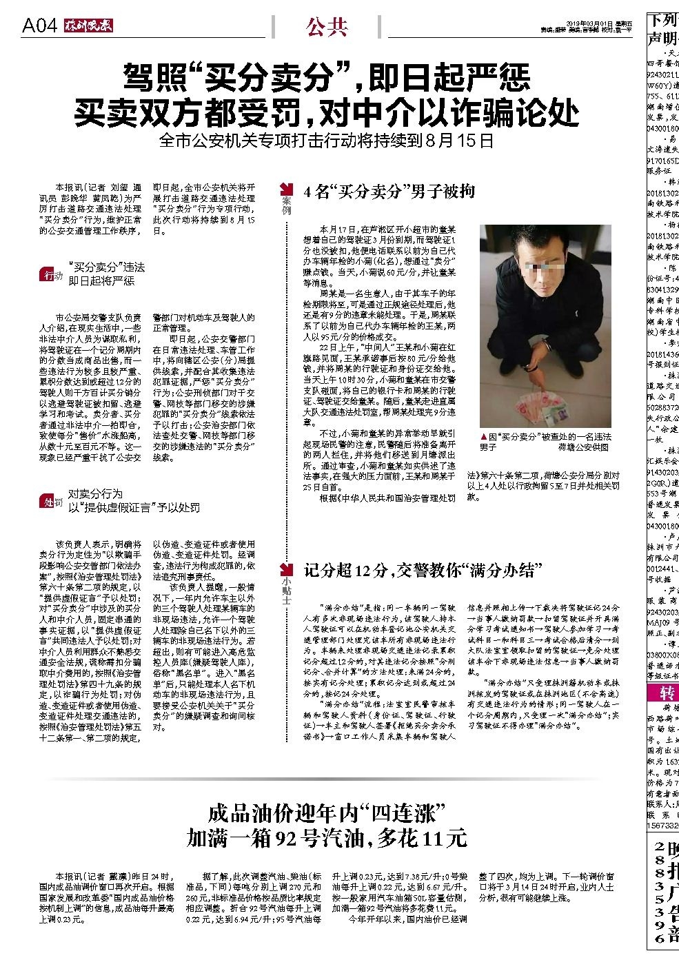 驾照“买分卖分”,即日起严惩 买卖双方都受罚,对中介以诈骗论处