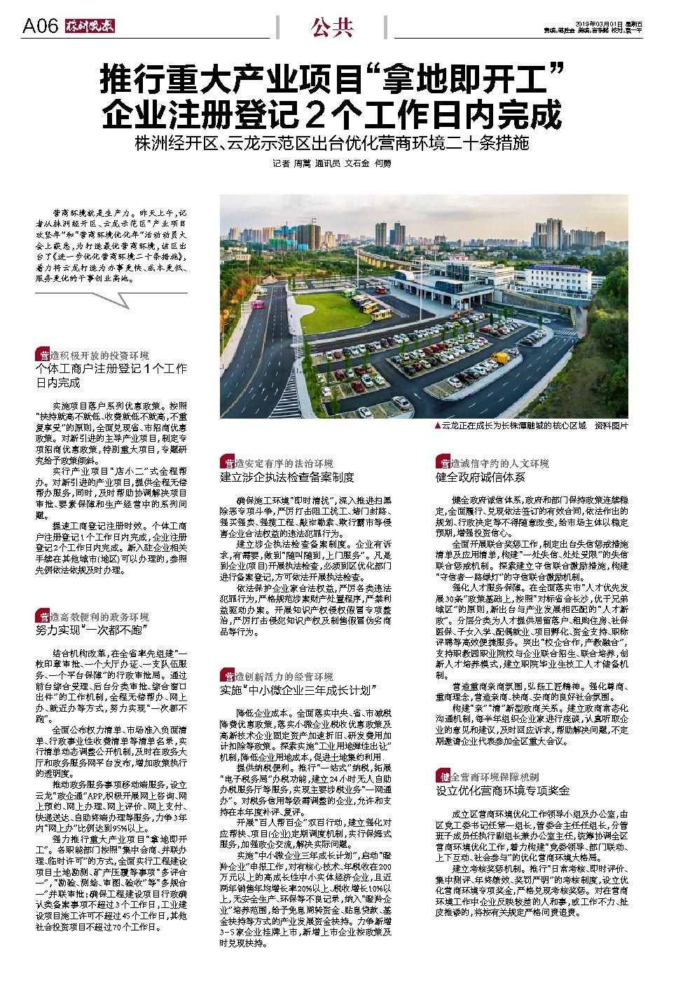推行重大产业项目“拿地即开工” 企业注册登记2个工作日内完成