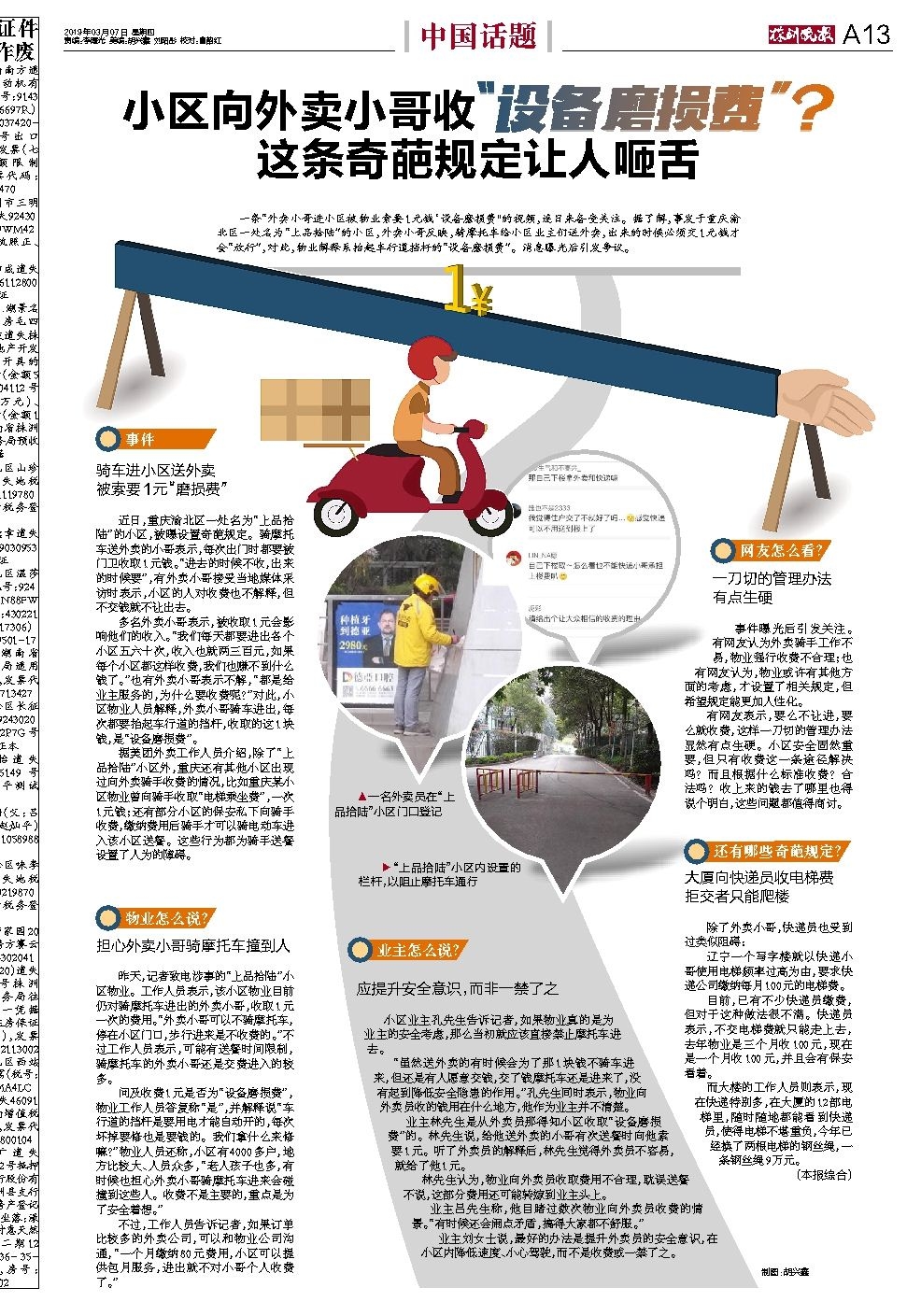 小区向外卖小哥收设备磨损费? 这条奇葩规定让人咂舌