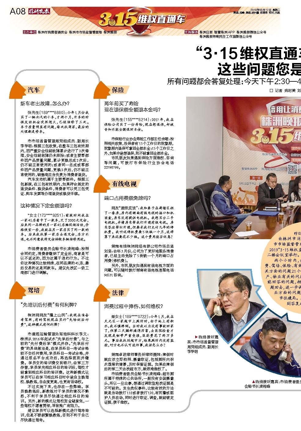 “3·15维权直通车”首场来电不断 这些问题您是否也遇到过?