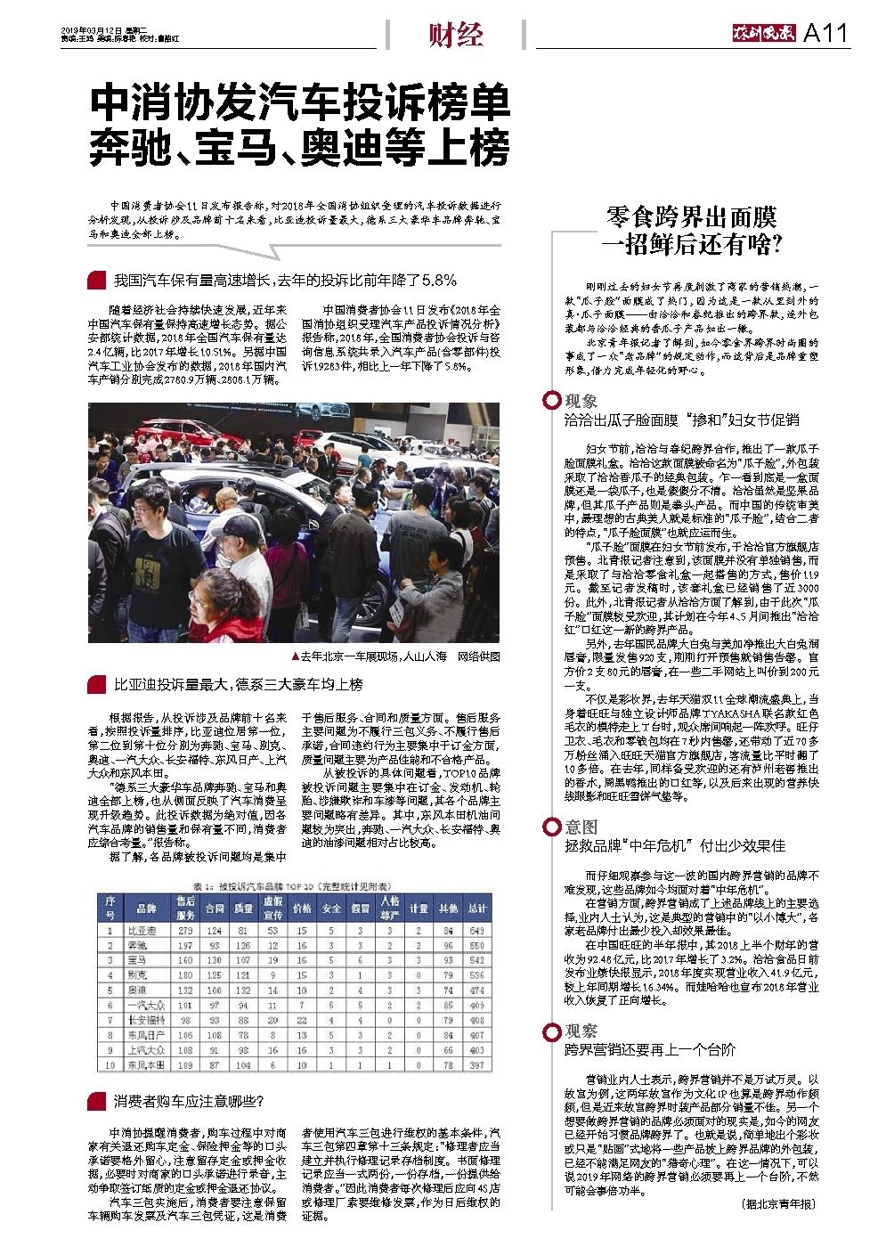 中消协发汽车投诉榜单 奔驰、宝马、奥迪等上榜