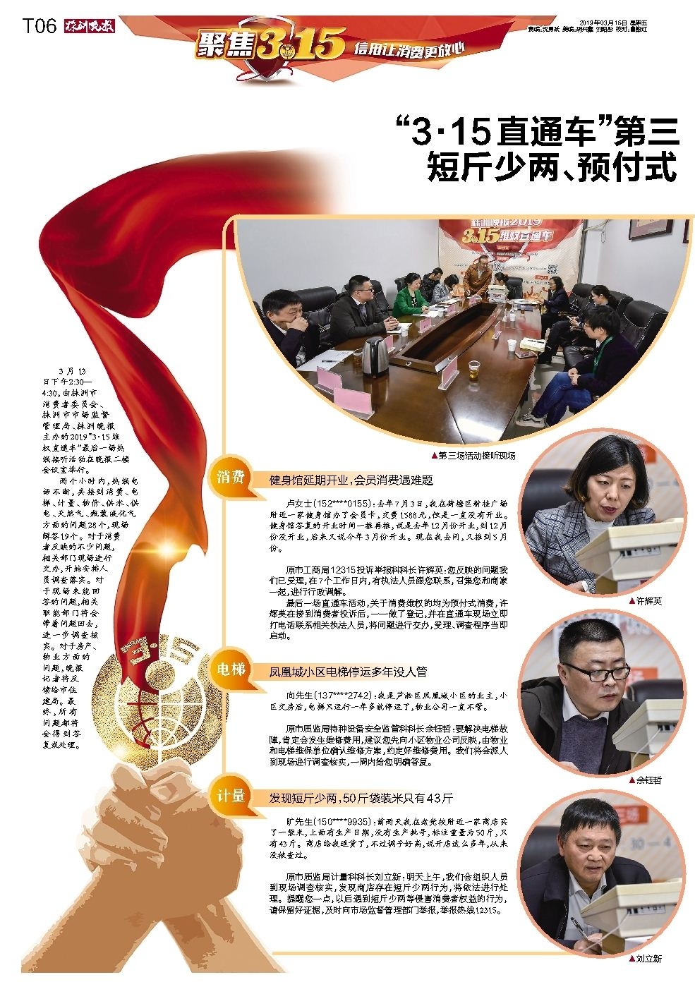 “3·15直通车”第三场,热线依然很热,短斤少两、预付式消费纠纷投诉不少